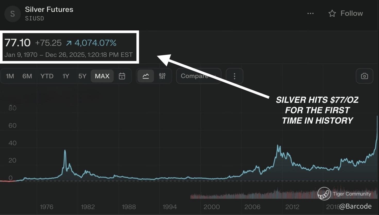 🩶🔥📈 Silver enters price discovery as $77 per ounce breaks 📈🔥🩶