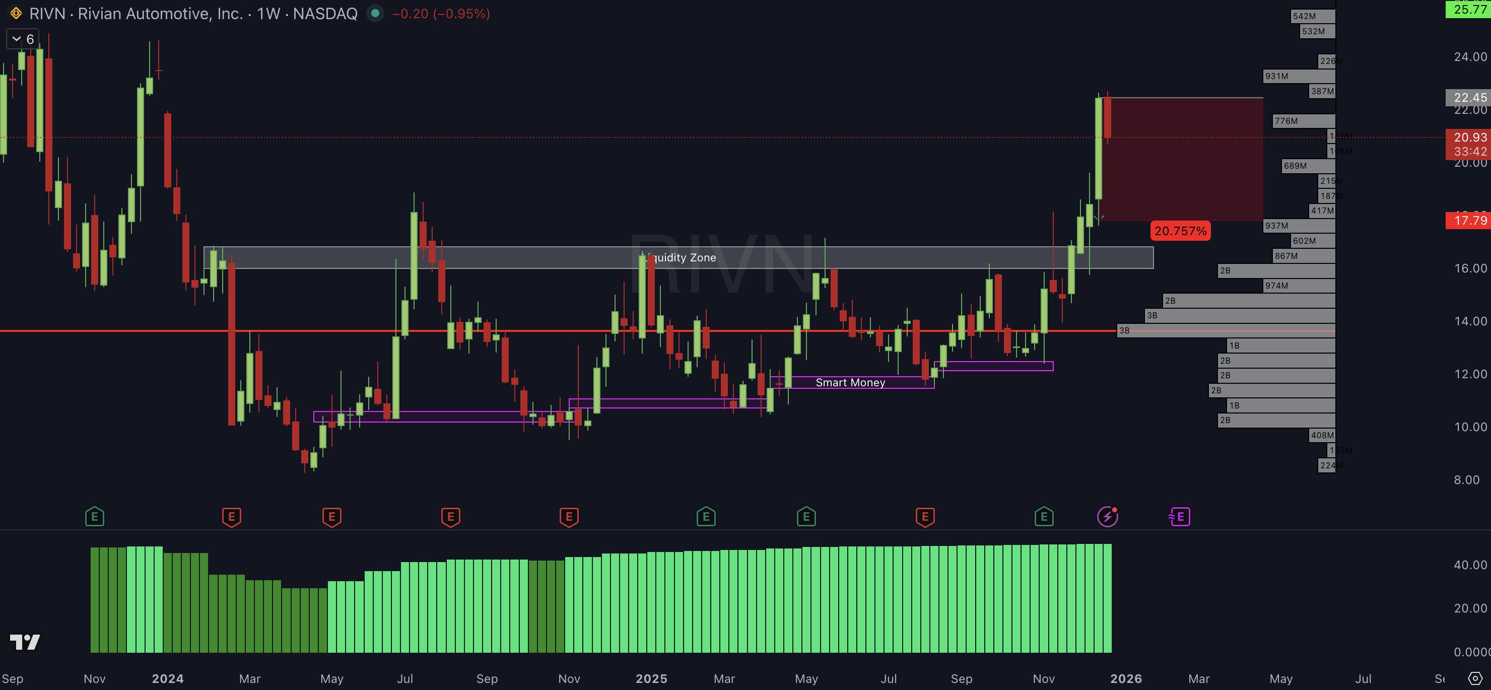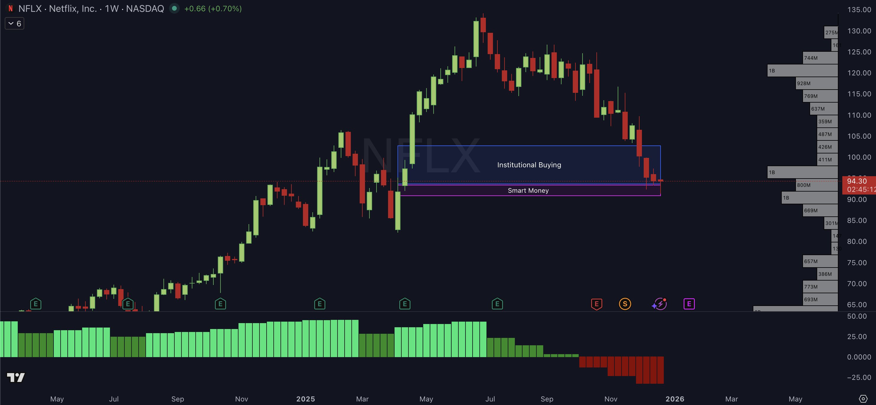 Price is dumping into a weekly SMZ+ a 1B share volume shelf. That’s where institutions usually step in.