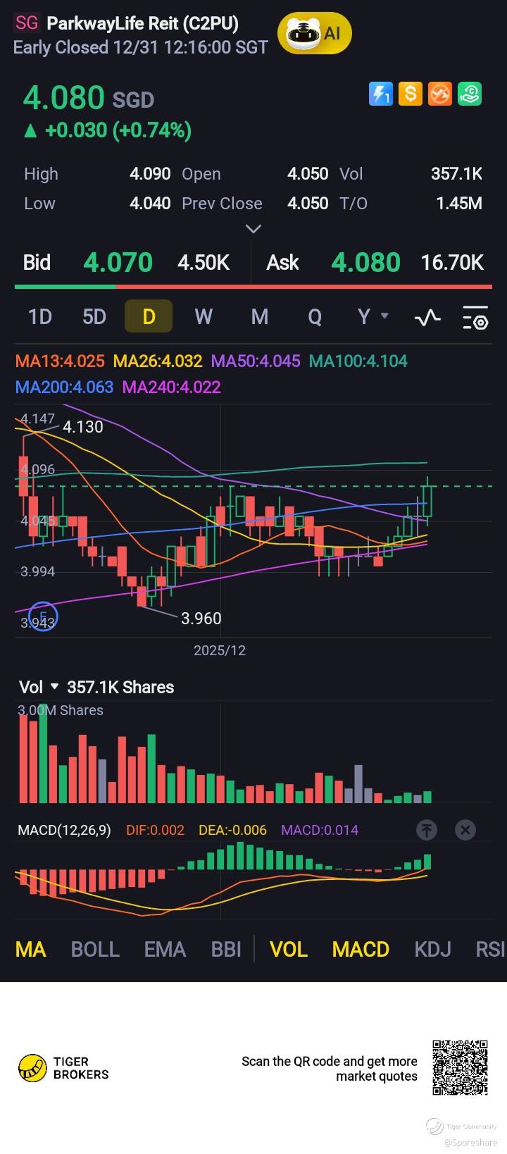 ParkwayLife Reit - Today closed well at 4.08, looks rather interesting!