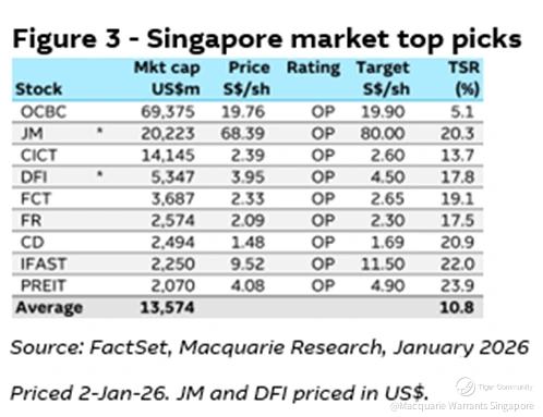 📕Macquarie Research (MQ) released a research report on 2 January 2026 that broke down the details driving the GDP numbers and also listed their top picks for Singapore in 2026. Of them, OCBC tops the list