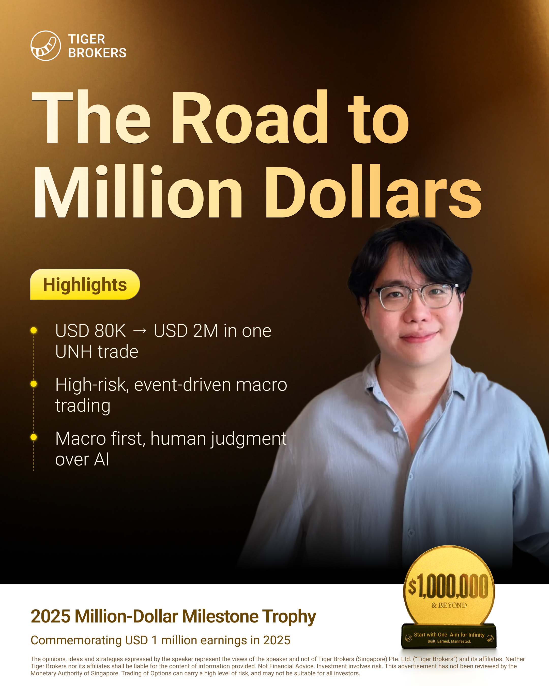This episode of The Road to Million Dollars features Brad, a Singapore-based investor whose portfolio crossed the million-dollar mark through high-risk, event-driven options trading—supported by strict position sizing, relentless information intake, and disciplined profit-taking.
