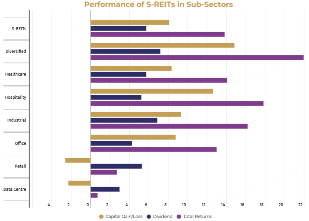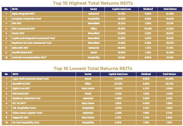 Outperforming the $Straits Times Index(STI.SI)$ : Major blue-chip REITs, including $Suntec Reit(T82U.SI)$ and $CAPITALAND INTEGRATED COML TR MGMT LTD(CPAMF)$ , recorded gains of up to 23%, outperforming the broader Straits Times Index (STI) in certain quarters.