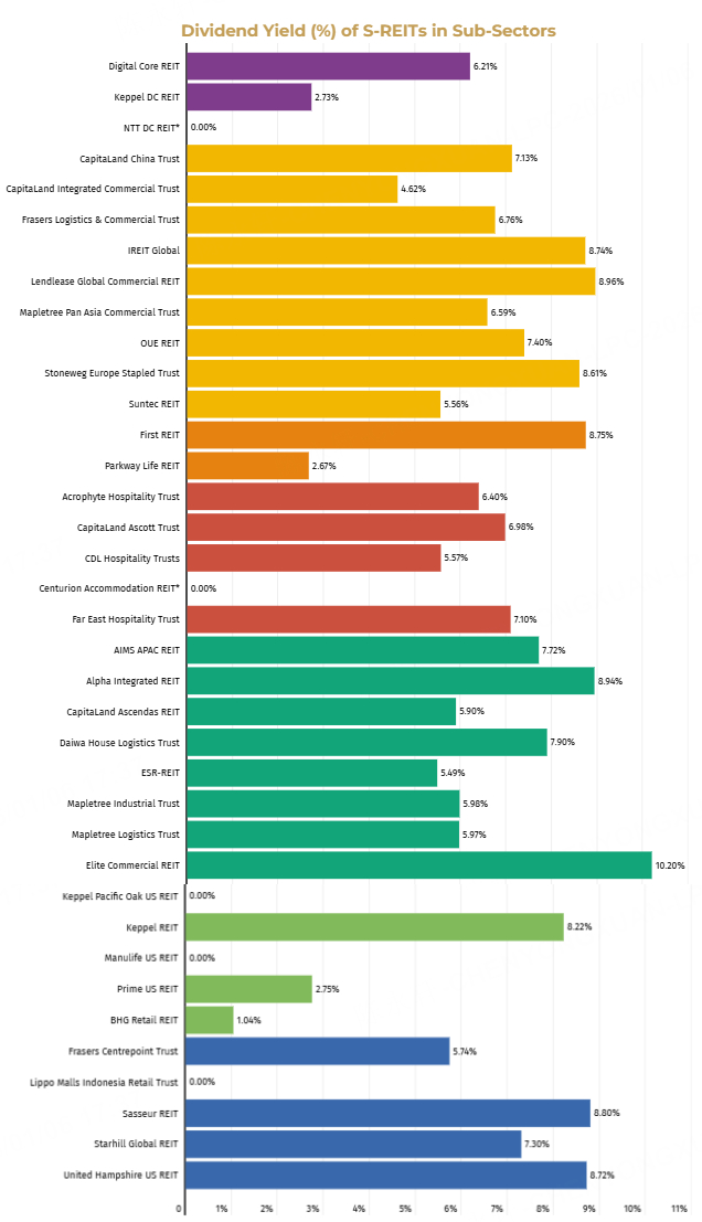 Yield Compression: Singapore’s 10-year government bond yield declined significantly, from 2.885% at the start of the year to 2.223% by 2025 end. This made the average REIT yield of 5.71% increasingly attractive to yield-seeking investors.