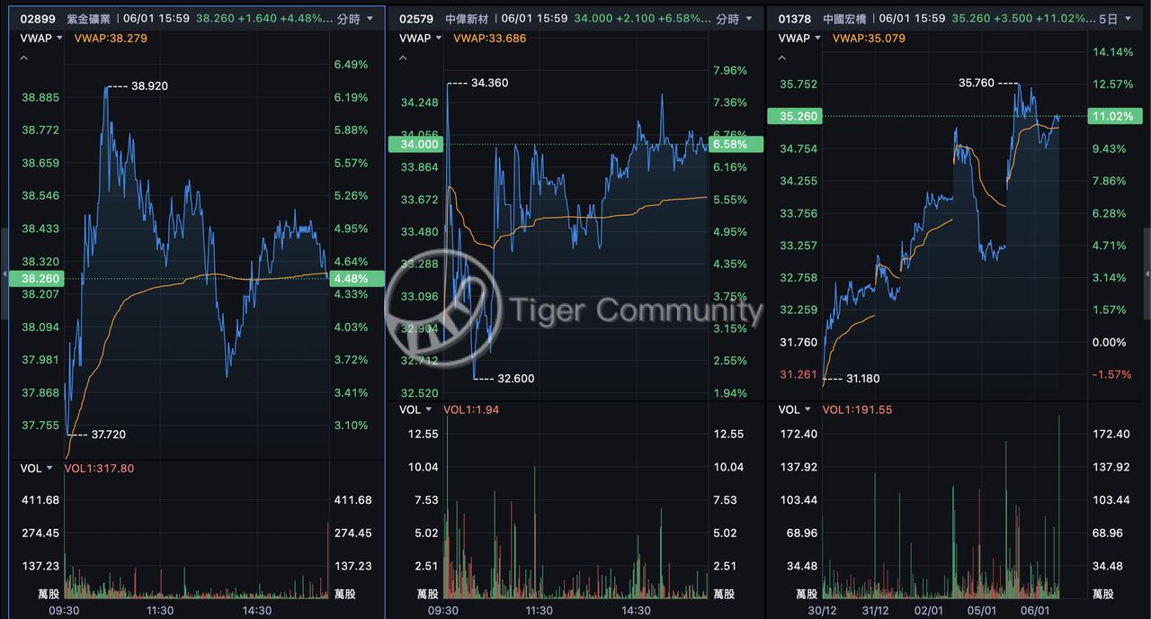 與礦業龍頭同步走強的,是材料端企業,此處以中偉新材 $中偉新材(02579)$ 為例。