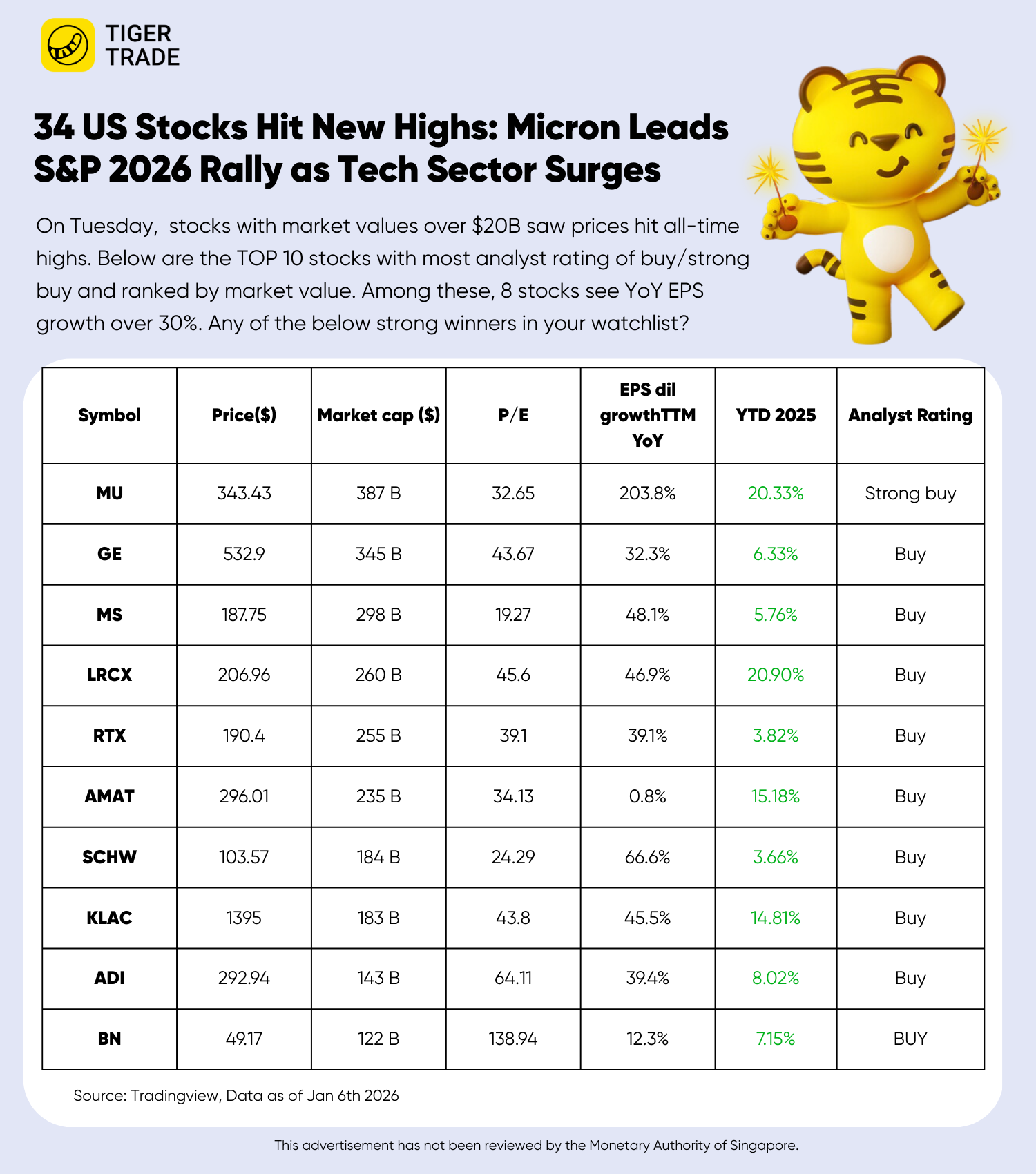 🎉34 US Stocks Hit New Highs: Micron Leads S&P Early-Year Rally as Tech Sector Surges
