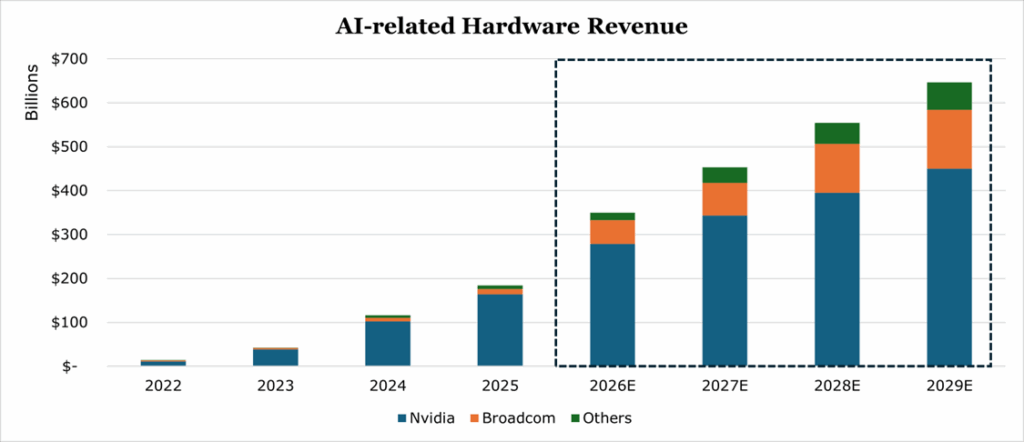 Despite stretched valuations, it appears that most analysts still expect AI-hardware providers to continue their rally far into the end of the decade. This of course, is driven by massive hyperscaler spending commitments which are expected to continue into 2026.