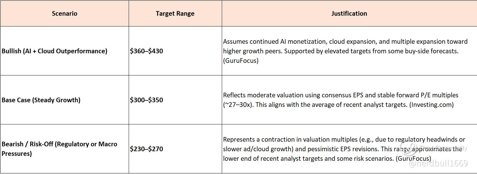 These ranges incorporate consensus analyst price targets, valuation multiple comparisons, and potential market risks (e.g., regulatory or macroeconomic headwinds).