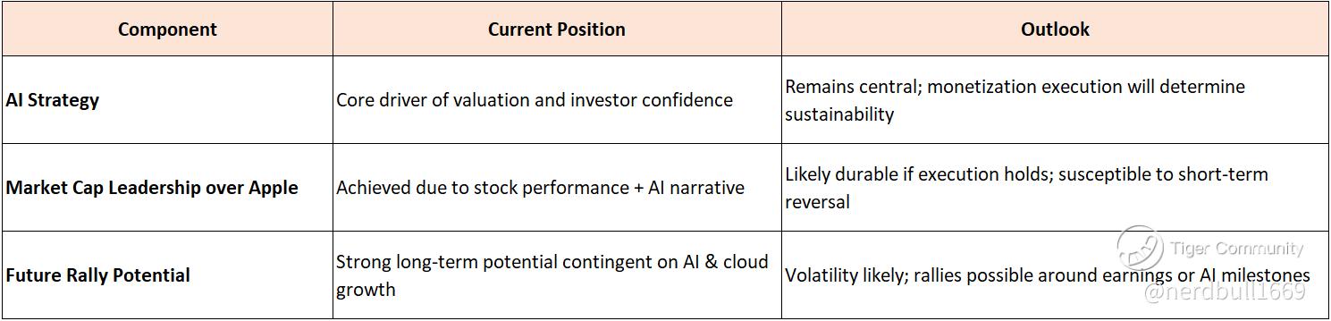Another significant rally is plausible, particularly if AI monetization accelerates, cloud revenue expands, and diversification bets begin to contribute visibly to earnings.