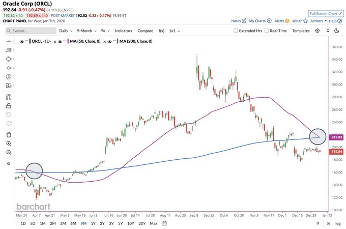Oracle $ORCL forms a Death Cross β οΈ for the first time since April π¨ The last one marked the bottom before price soared 169% over the next 5 months ππ