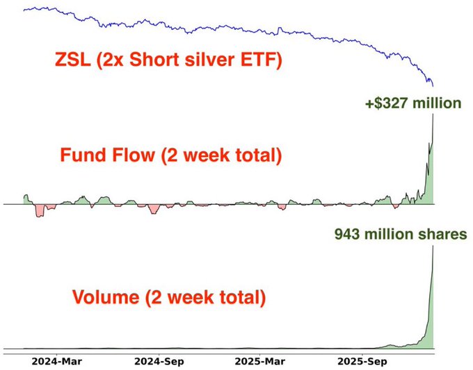 2X Short Silver ETF $ZSL saw an all-time high inflow on Tuesday π¨π¨ Traders are betting the Silver run is over π