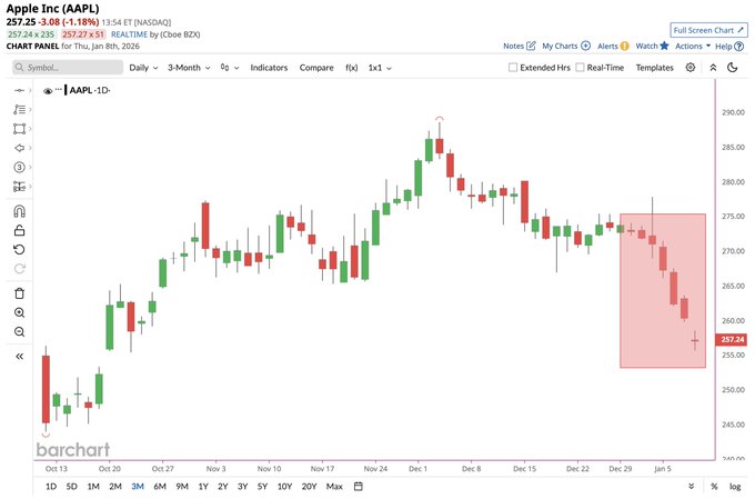 Apple $AAPL on track for its 7th consecutive red day, its longest losing streak since May ππ€―