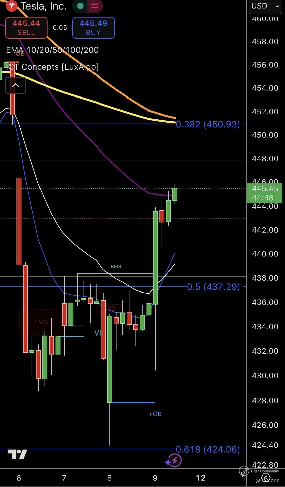 π $TSLA +$10 now