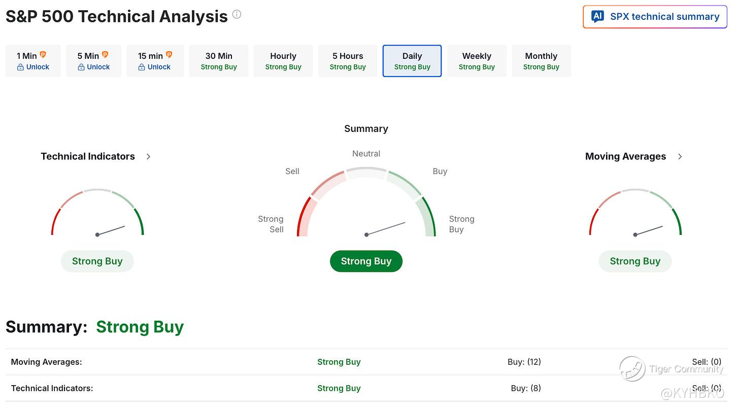 Based on the daily interval, 20 indicators display a “Buy” rating, while none display a “Sell” rating. This leads to a “Strong Buy” rating for the daily interval,