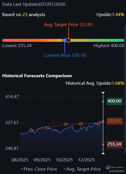 Based on 23 analysts from Tiger Brokers offering 12 month price targets for JPMorgan Chase in the last 3 months. The average price target is $333.91 with a high forecast of $400.00 and a low forecast of $255.34. The average price target represents a 1.44% change from the last price of $329.19.