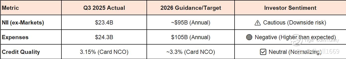 The $105B Expense Target: Management signaled in December that 2026 expenses could reach $105B due to AI investments and tech modernization. Any sign that costs are ballooning faster than revenue growth (negative operating leverage) will be a major headwind.