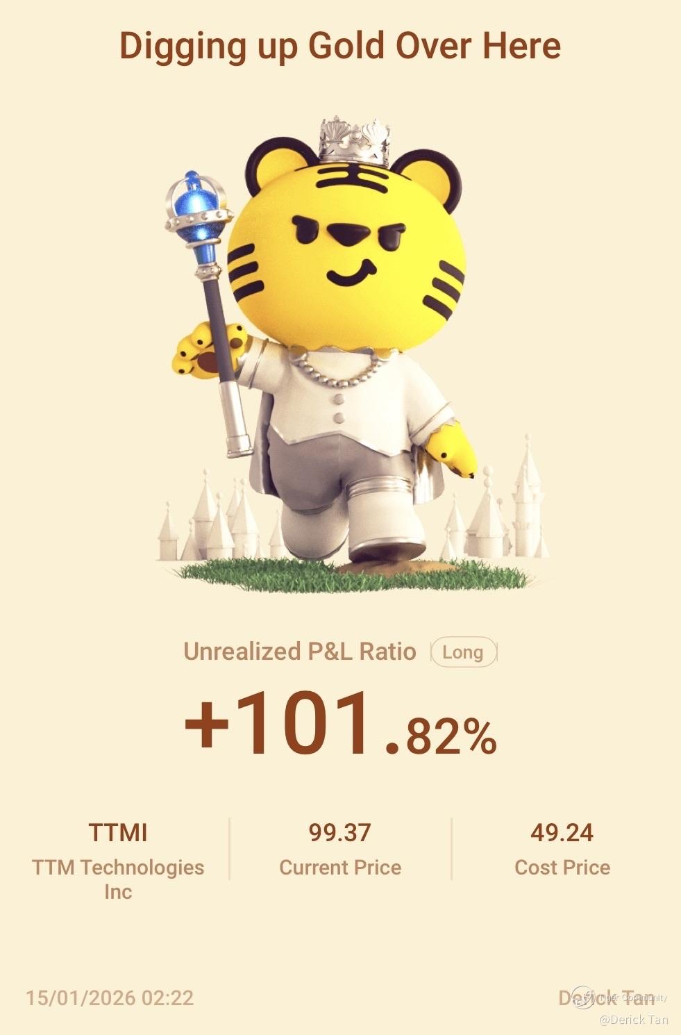 My 1-bagger is $TTM Technologies Inc(TTMI)$ , which manufactures and sells mission systems, radio frequency (RF) components and RF microwave/microelectronic assemblies and Printed Circuit Boards (PCB) in the U.S., Taiwan and internationally.