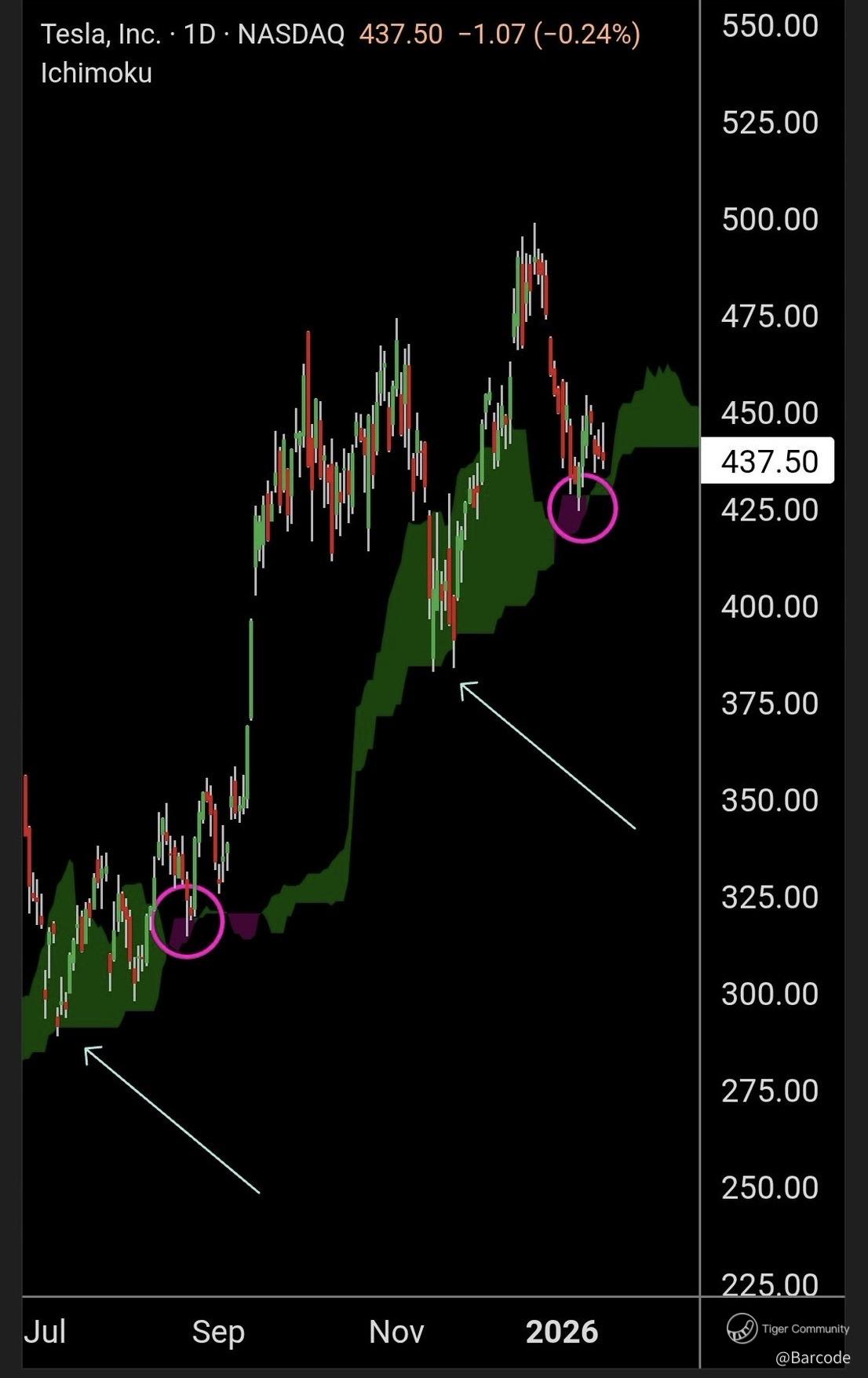 I’m watching $TSLA closely as it continues to hold Ichimoku cloud support, and the coming week shapes up as a decisive inflection window for structure, volatility regime, and momentum control.
