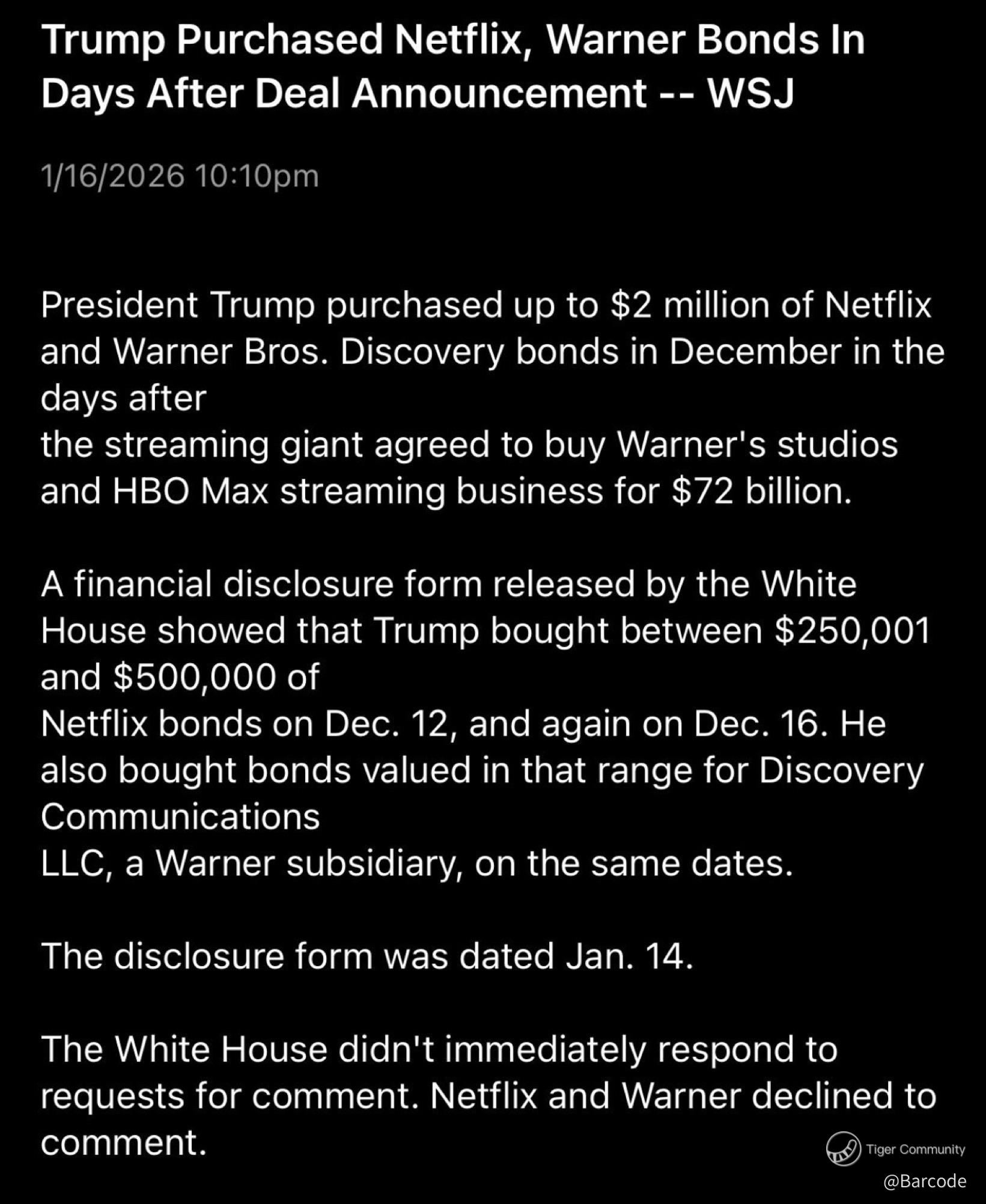 Trump buying $NFLX bonds is not the story.