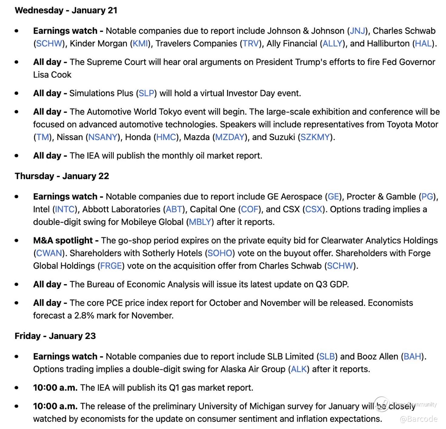 We open tech earnings with $NFLX, followed by $INTC, $ISRG, $SLB, and $HAL. This is not about beats alone. Guidance credibility matters more than headline numbers in a world where AI capex, energy demand, and margin discipline coexist.