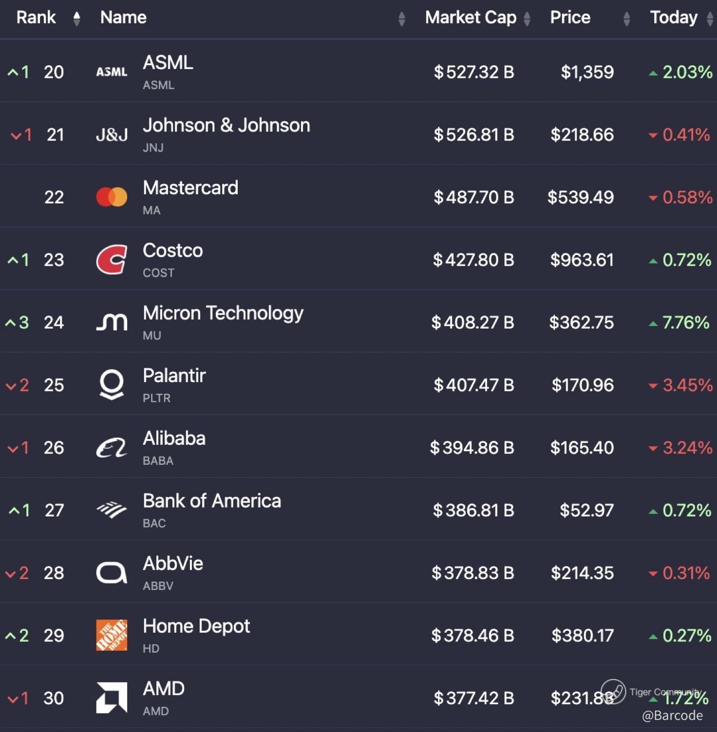 $MU becoming a top-25 global company reinforces the same point. The AI cycle is consolidating into scale leaders rather than broadening evenly.