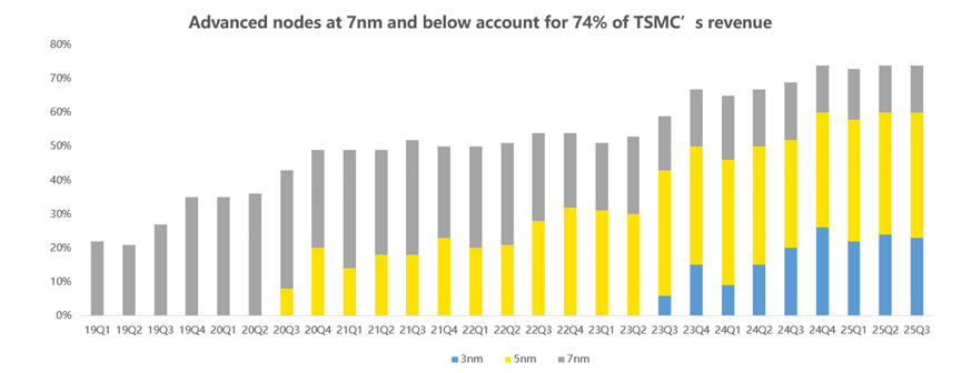 On production process side, in the fourth quarter of last year, 3nm contributed 28% of revenue, 5nm accounted for 35%, and advanced processes at 7nm and below generated 77% of total revenue—a record share.