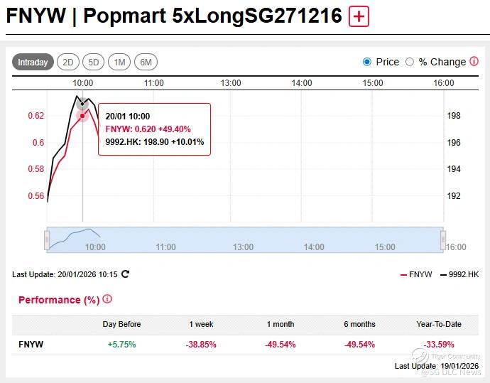 Tracking the underlying, Pop Mart DLCs reacted strongly to the underlying's move with $Popmart 5xLongSG271216(FNYW.SI)$ gaining as much as +50%, while the $Popmart 5xShortSG270706(ZBTW.SI)$ declined by a similar magnitude.