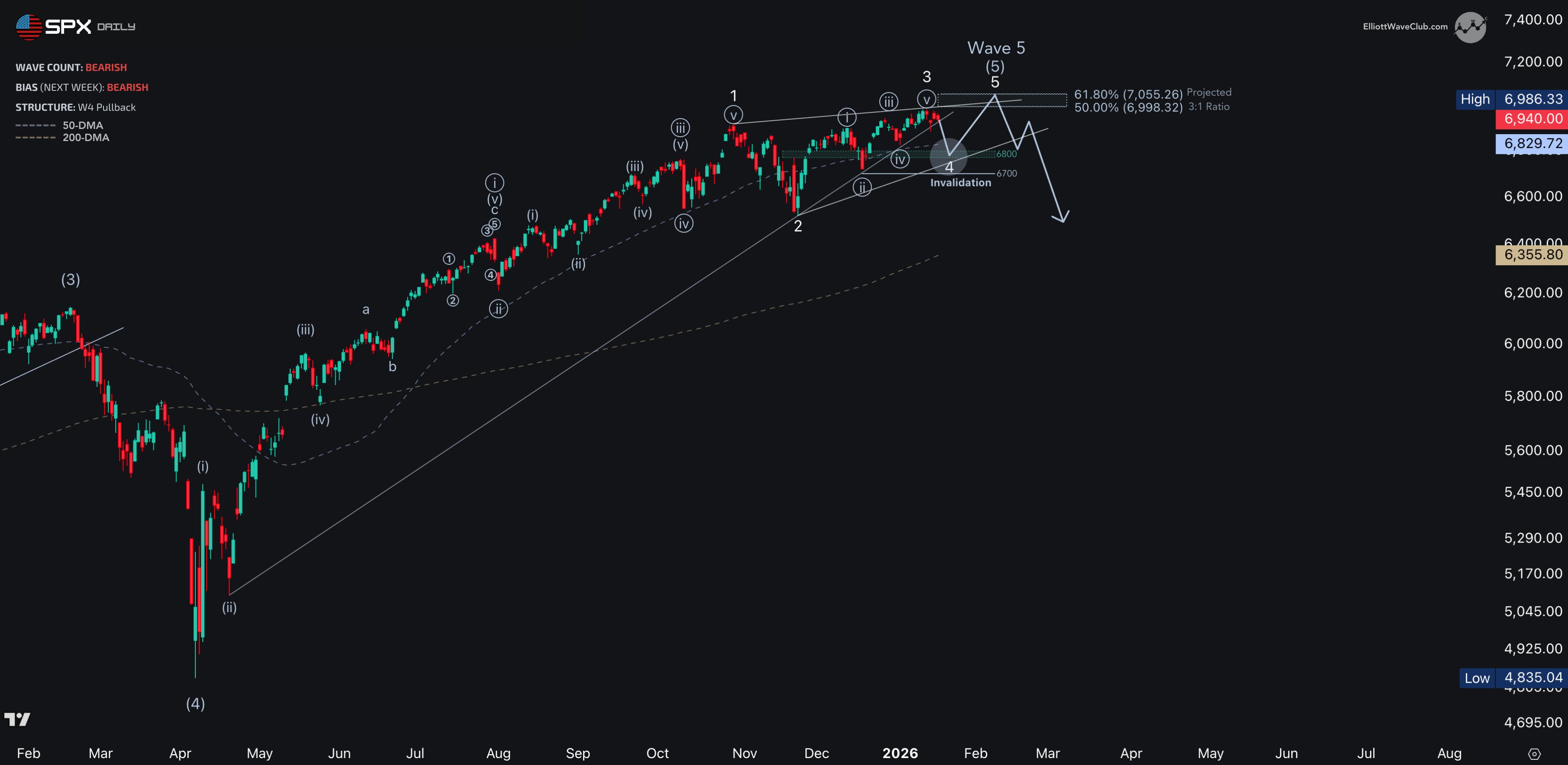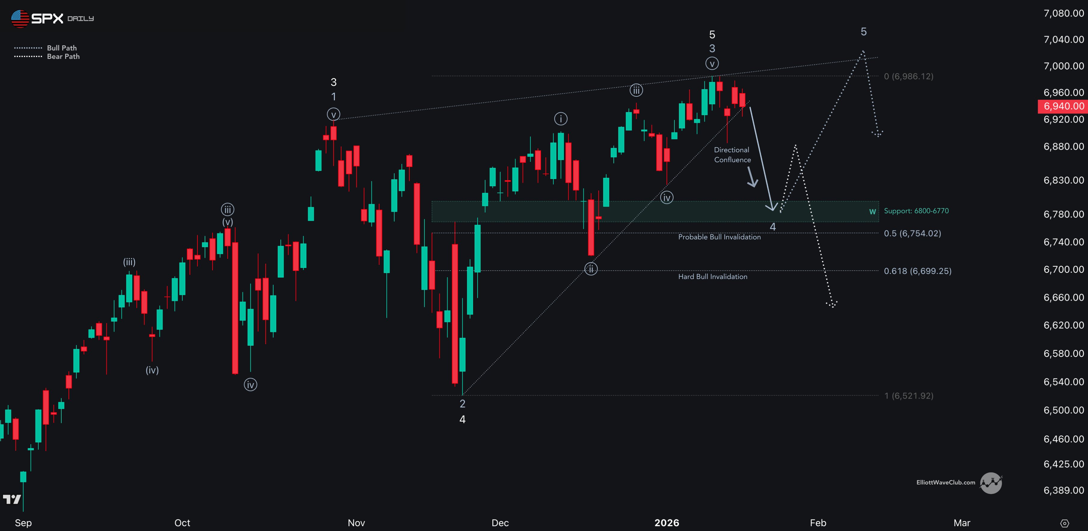 SPX Pullback Converges on 6800–6750 as Wave 4 Comes Into Focus