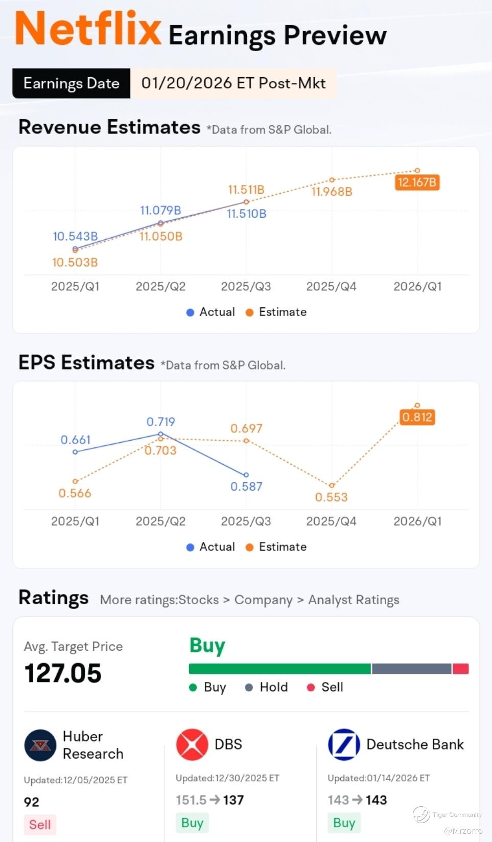 The market's focus is not whether Q4 growth is strong, but whether future growth can be made more "certain." The Warner situation has effectively shifted NFLX's investment profile from a "steady price-hike + ads ramp cash cow" into an "M&A integration + regulatory negotiation event-driven stock." In the near term, price discovery is likely to be driven less by the earnings print and more by whether the deal proceeds, how it is financed, where leverage settles, and the level of antitrust risk.