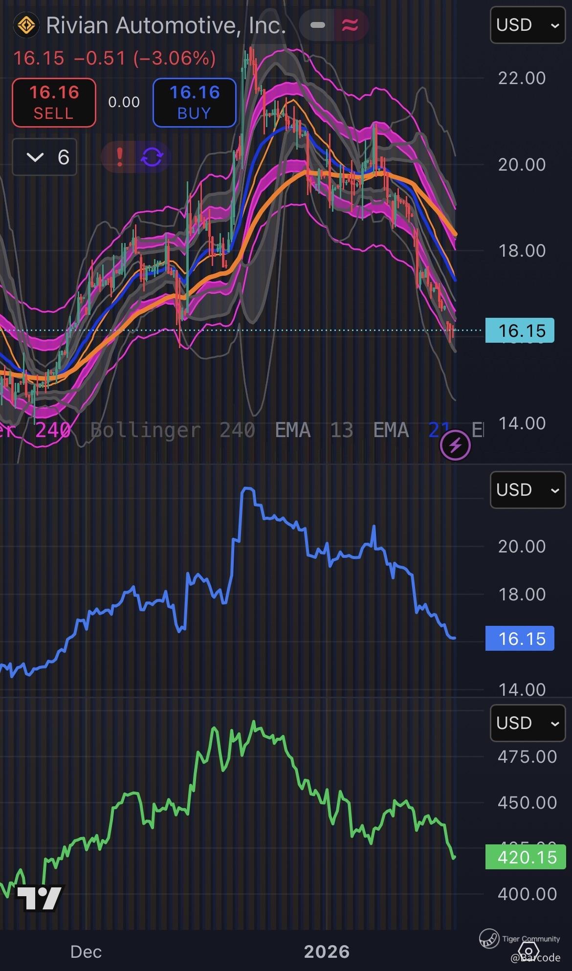 $Tesla Motors(TSLA)$ $Rivian Automotive, Inc.(RIVN)$ $NVIDIA(NVDA)$ 🟨 🔺 🟣
