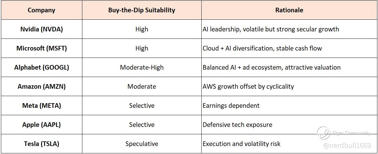 The choice of buy-the-dip candidates depends on valuation, fundamental strength, growth drivers, and risk tolerance. Below are the more compelling candidates among the Magnificent 7: