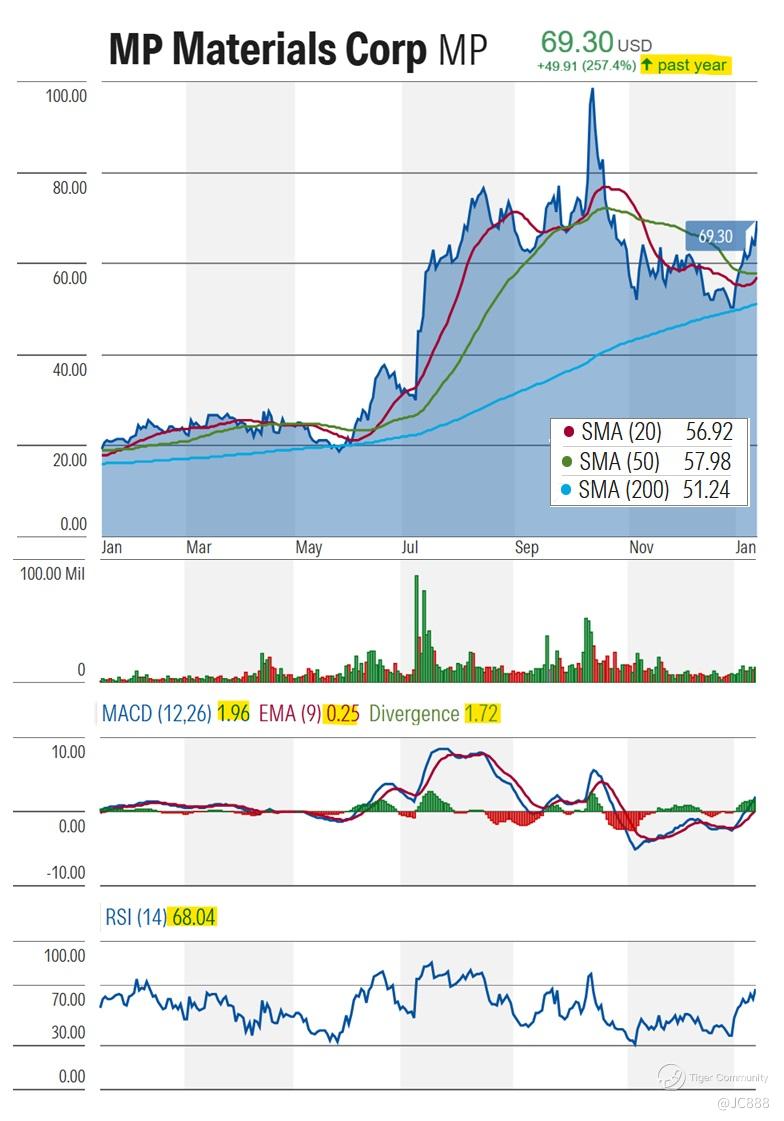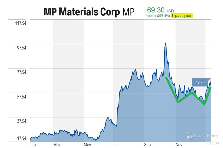The market response to these tensions is most visible in the stock price of $MP Materials Corp.(MP)$, US leading rare earth producer.