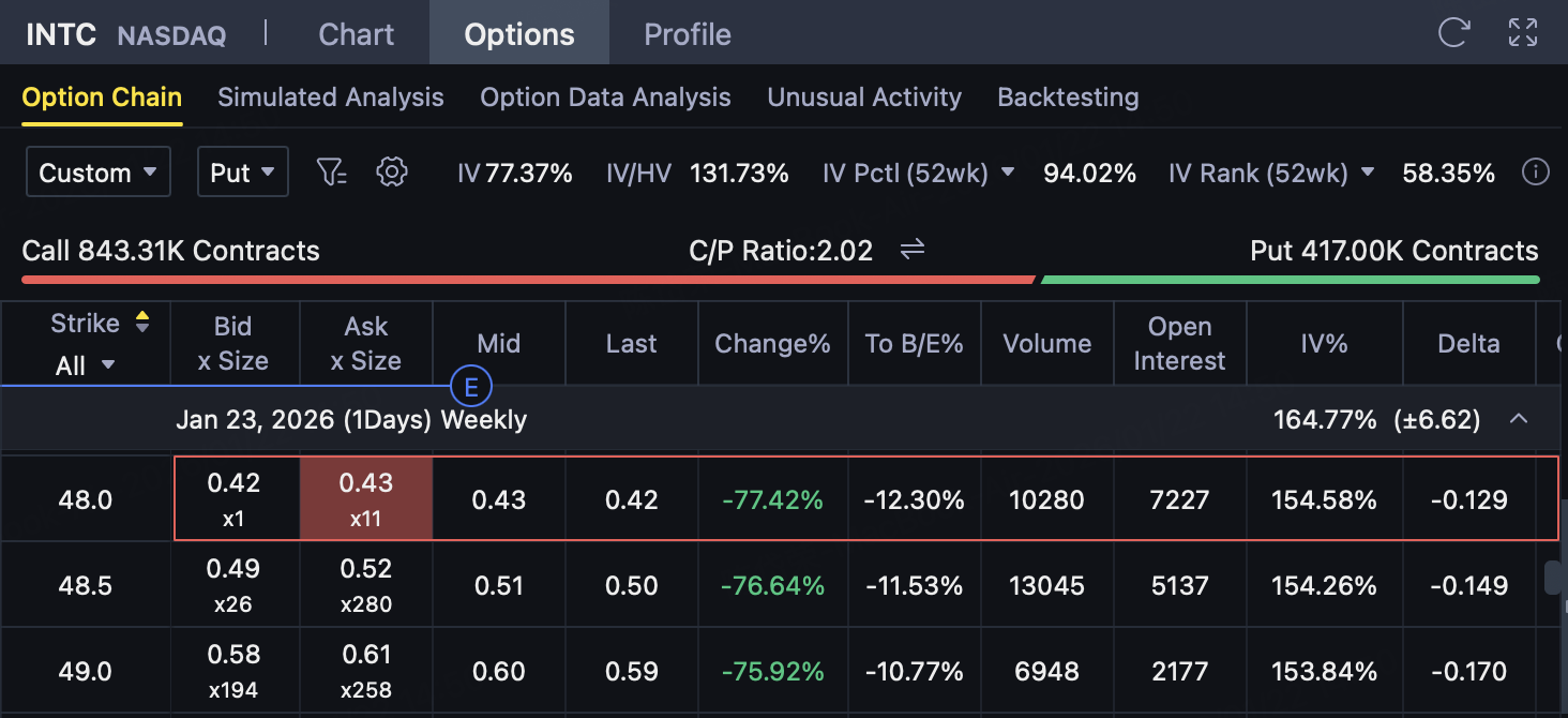 INTC expiration price ≤ $48