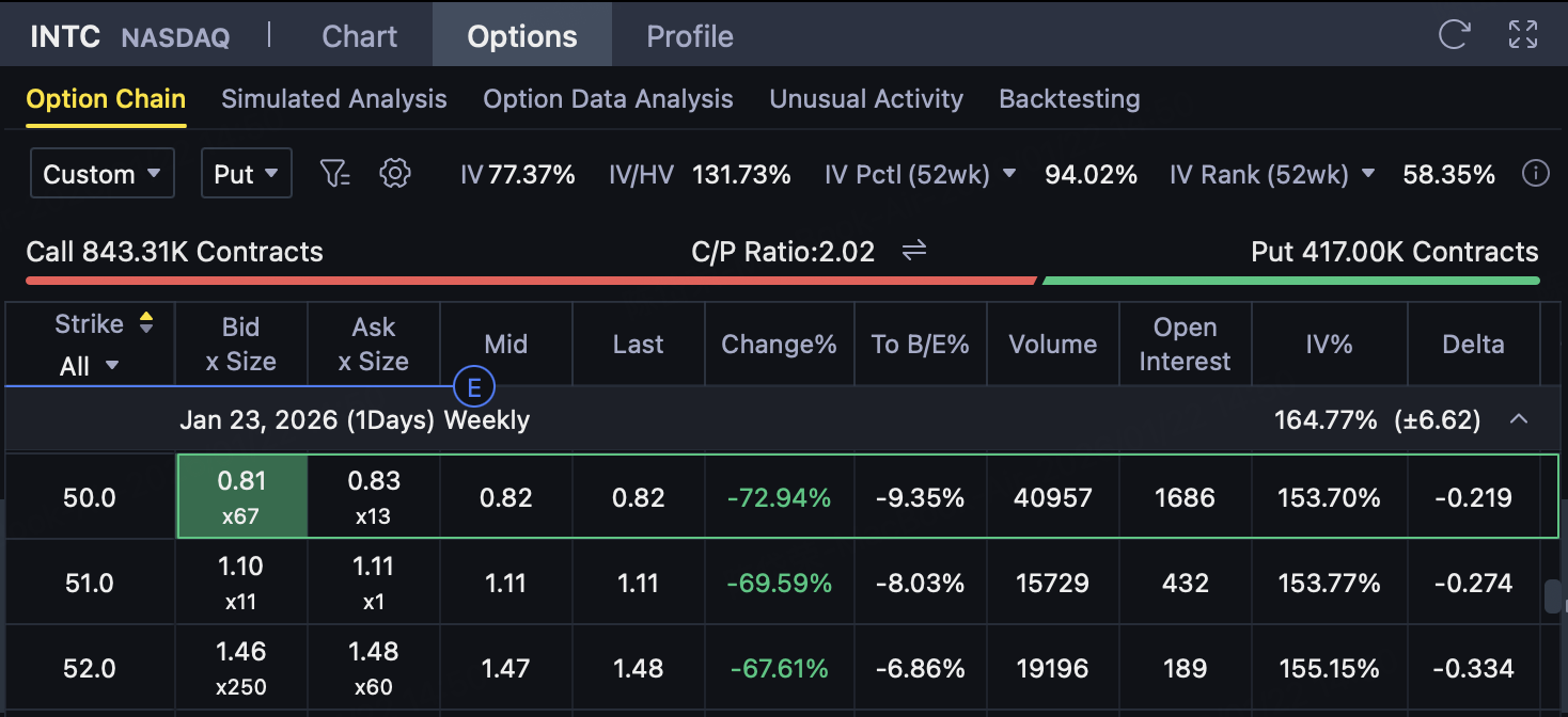 WhenINTC expiration price ≥ $50Time: