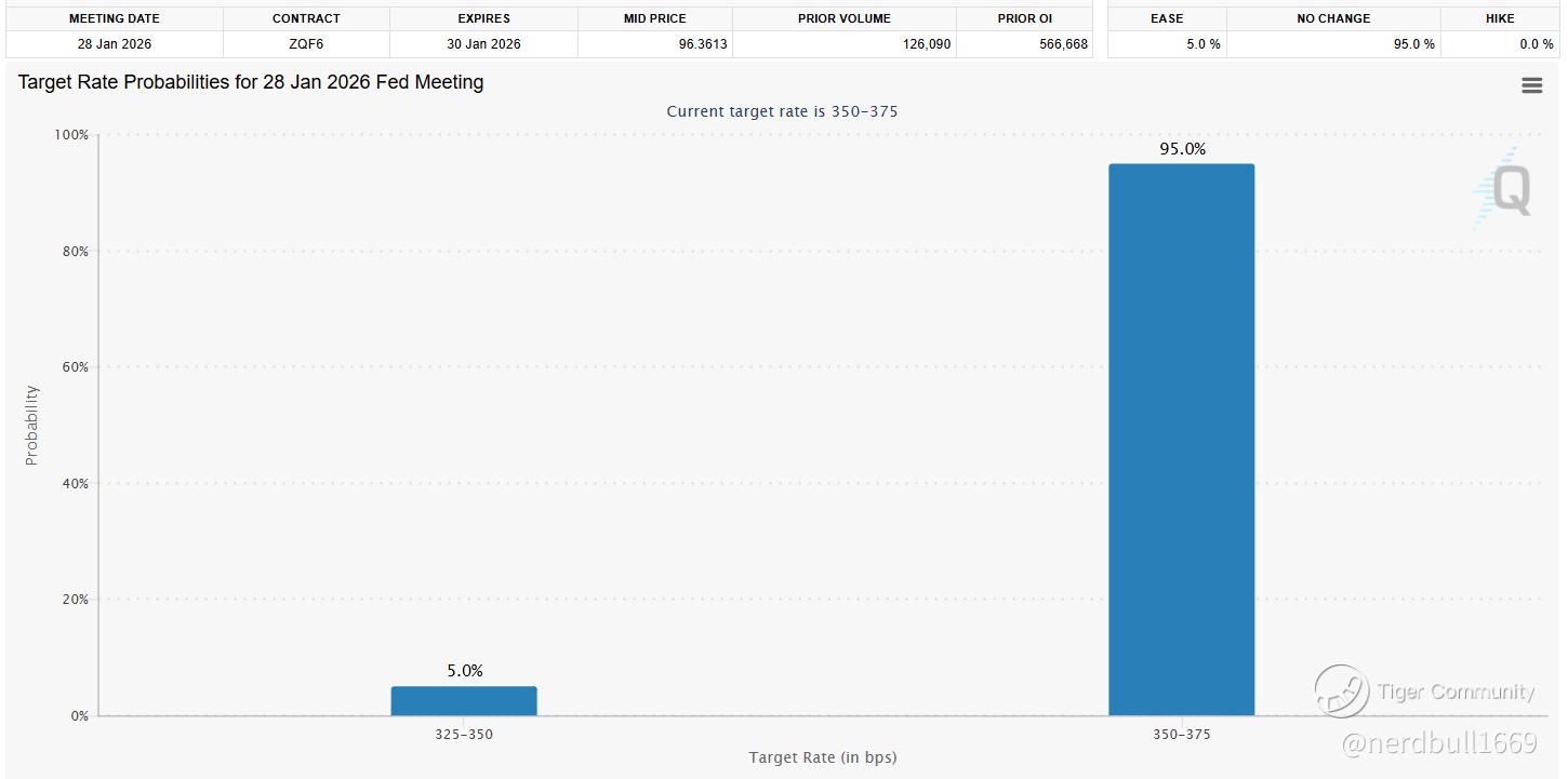 As of market data updated on January 22, 2026, there is an approximately 5% to 6% probability of a rate cut at the upcoming FOMC meeting on January 28, 2026. The overwhelming consensus among market participants and economists (around 94% to 98% probability) is that the Federal Reserve will hold the current target rate steady at the 3.50% to 3.75% range.