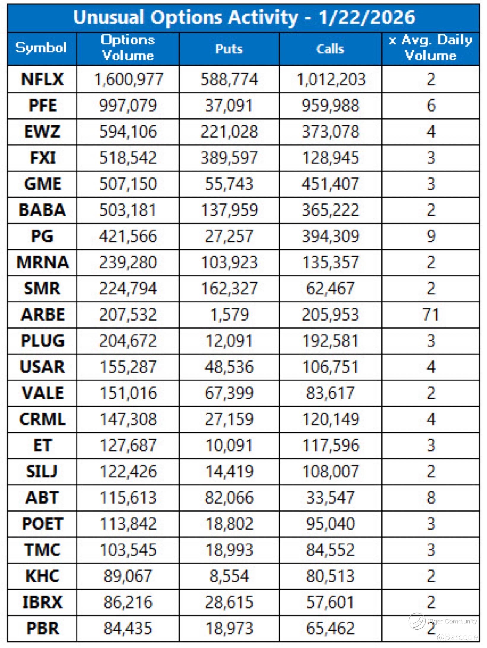 $NFLX traded roughly 1.60M contracts, with calls at about 1.01M versus 588K puts, around 2x average daily volume, signalling upside chase and institutional repositioning post earnings.