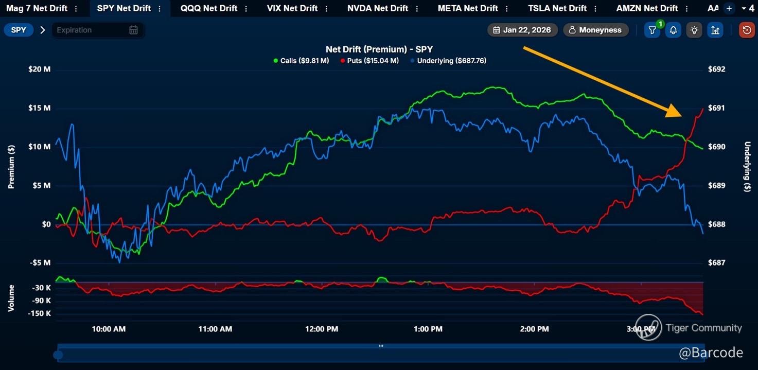 Geopolitical premium eased as Trump backed away from European tariff escalation and floated a NATO aligned Greenland framework. Denmark reiterated sovereignty constraints, but markets interpreted the shift as de escalation. I’m watching closely for renewed tariff rhetoric or geopolitical flare ups that could reintroduce risk off flows.