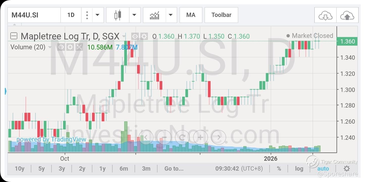 Mapletree Log Tr - She is gaining strength likely to rise up to reclaim 1.33!