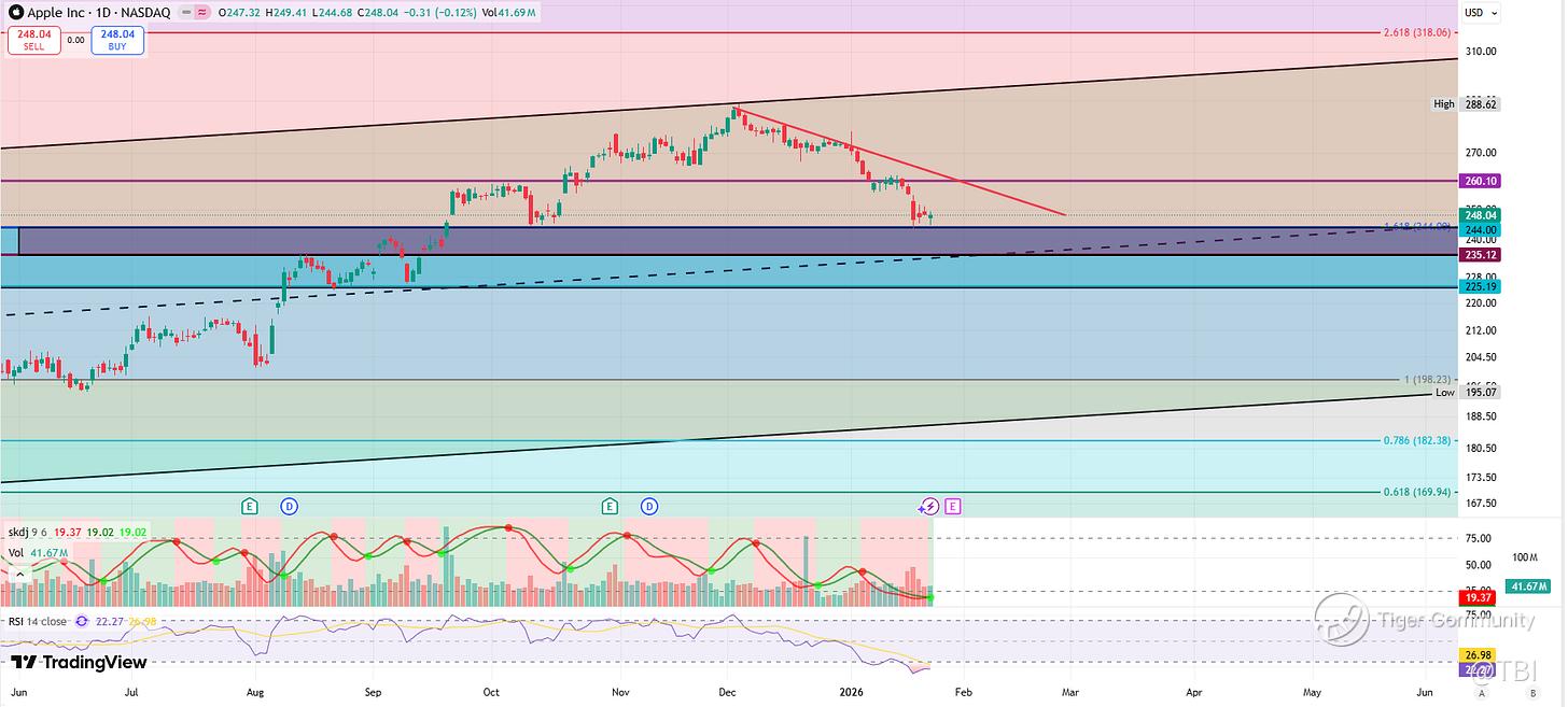 Otherwise, AMD could enter price discovery and push into the 300s, should 265.10 turn into support. Given the nature of this level, and earnings coming up on 3rd Feb, it could come down to the financials and guidance on the day itself.