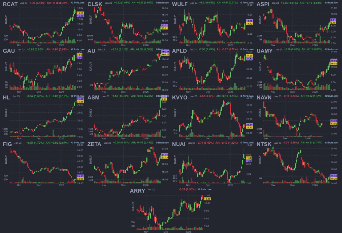 $Red Cat Holdings Inc.(RCAT)$ $CleanSpark, Inc.(CLSK)$ $TeraWulf Inc.(WULF)$ $ASP Isotopes Inc.(ASPI)$ $Galiano Gold Inc.(GAU)$ $Anglogold Ashanti(AU)$ $APPLIED DIGITAL CORP(APLD)$ $United States Antimony(UAMY)$ $Hecla Mining(HL)$ $Avino Silver & Gold Mines(ASM)$ $Klaviyo, Inc.(KVYO)$ $Navan, Inc.(NAVN)$ $Figma(FIG)$ $Zeta Global Holdings Corp.(ZETA)$ $New Era Helium Inc(NUAI)$ $Netskope, Inc.(NTSK)$ $Array Technologies Inc.(ARRY)$