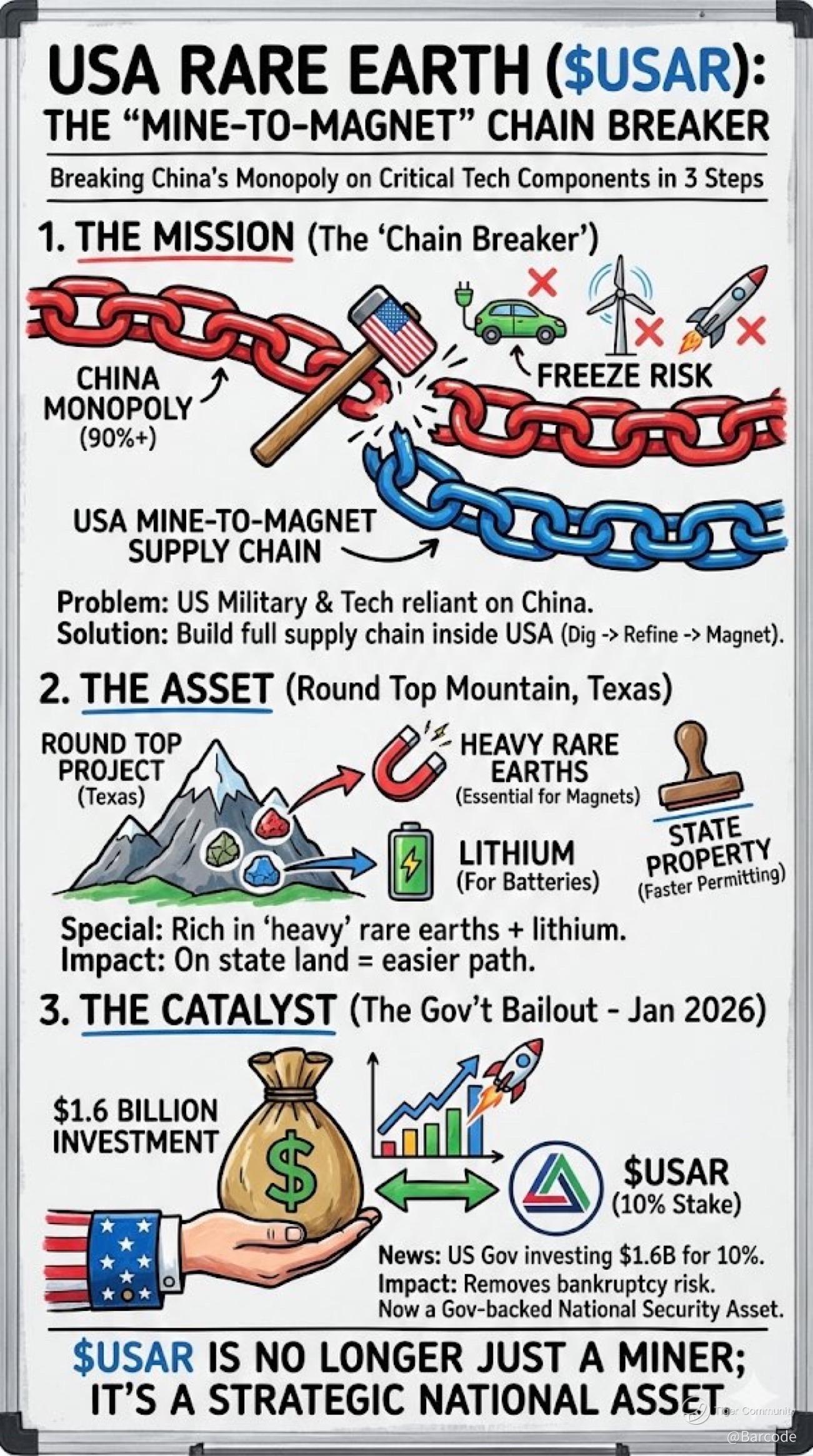 Capital is rotating into hard assets, AI infrastructure, defence, energy, and strategic supply chains. $USAR sits at the intersection of geopolitics, national security, electrification, defence procurement, EV supply chains, and AI hardware dependency. This transcends equity speculation into a sovereign-directed supply chain reconfiguration away from adversarial dependence. Iโm treating $USAR as a policy-accelerated momentum regime with asymmetric upside convexity. I am conviction-weighted because fiscal alignment, derivatives accretion, volatility dynamics, historical pattern congruence, and thematic convergence are aligning in a way that rarely occurs simultaneously.