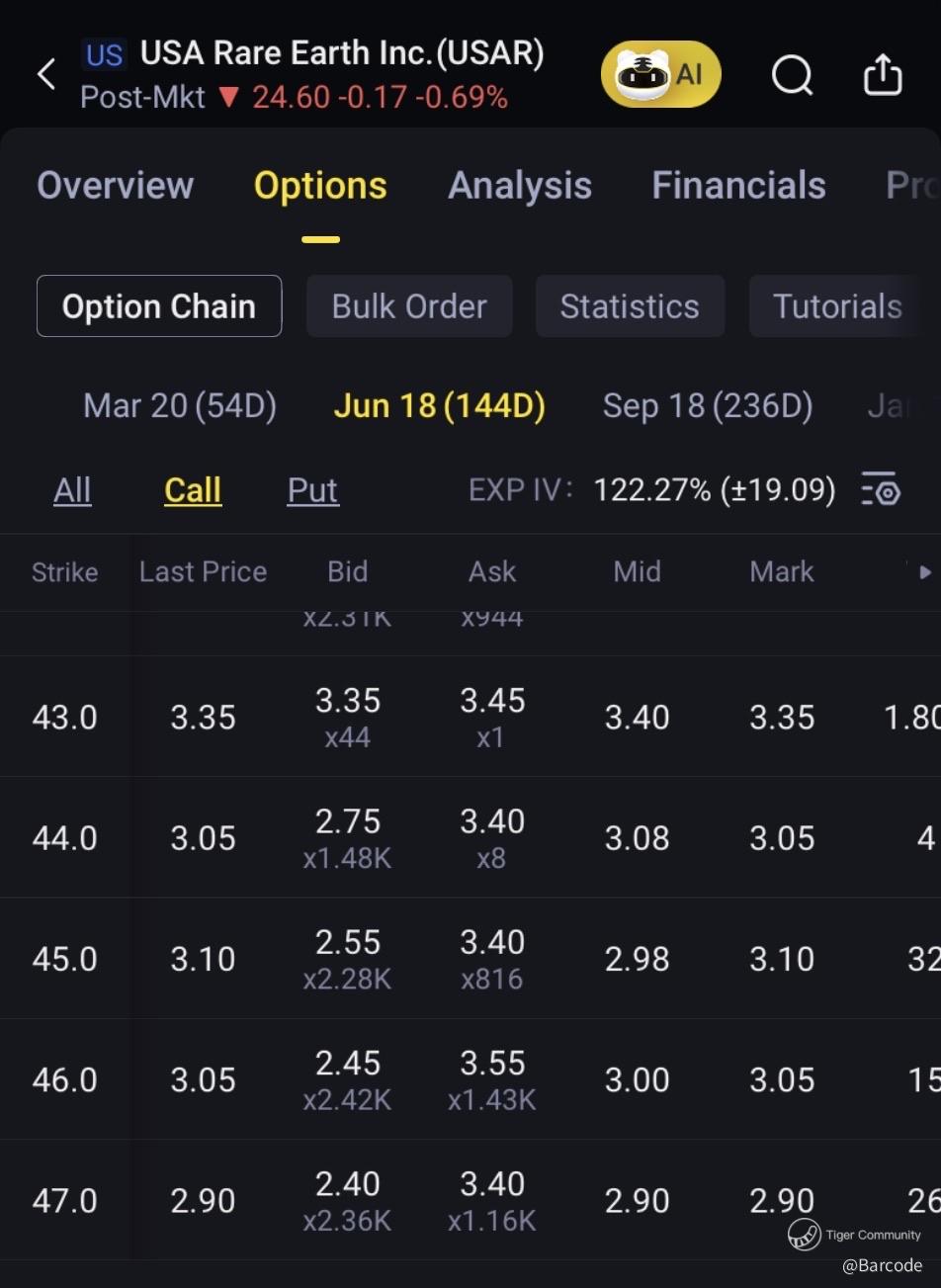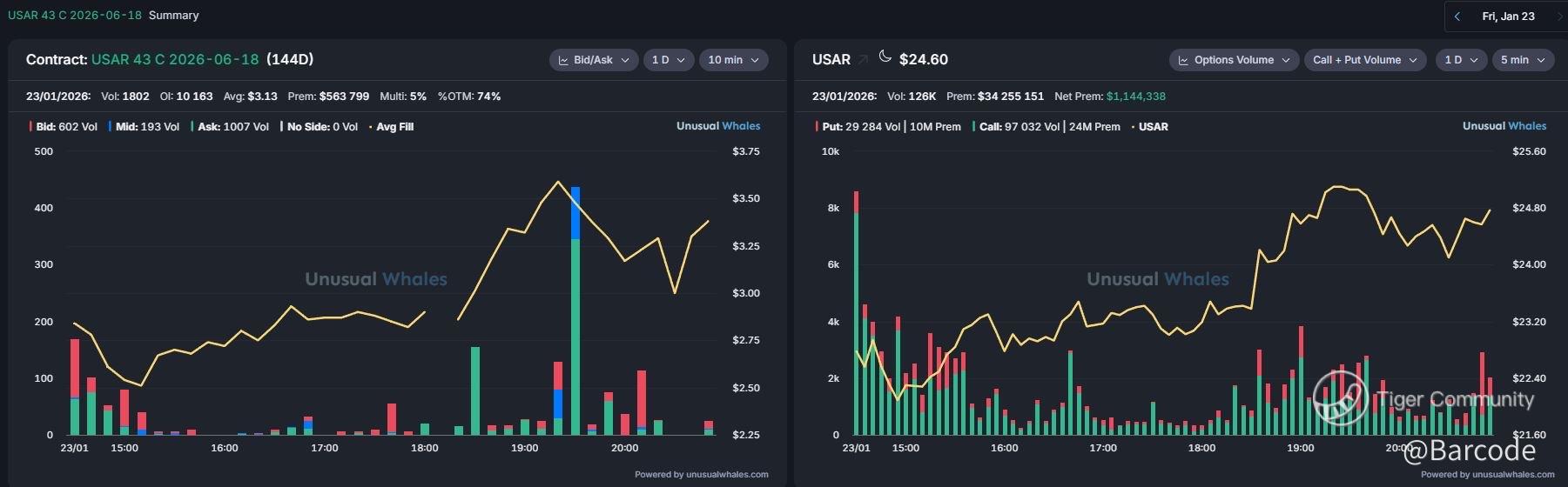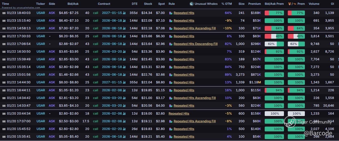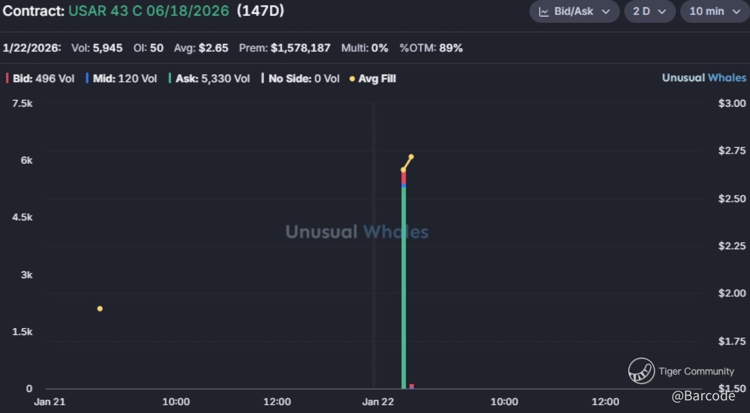 ๐ฏ๐ฅ Institutional Contract Concentration โ $USAR 18Jun26 $43 Call