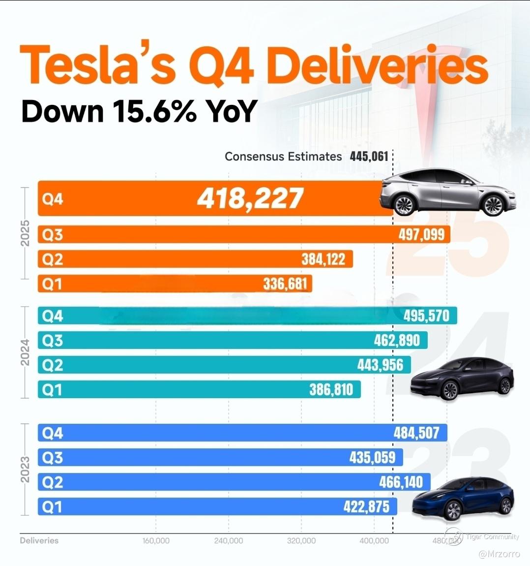 – Tesla's Q4 revenue is expected to be $24.75 billion, a roughly 3.71% decrease from the level in Q4 FY2024.