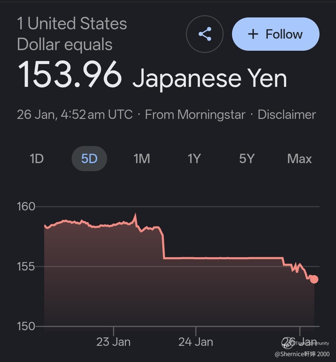 - Ah_Meng·01-26 20:55TOPEnd of JPY carry-trade? That’s being the latest play… however if US FED is joining in to buy JPY would definitely accelerate the dedollarisation process. Unlike previously, US can print money all they like because of petrodollars, they might think twice if the depreciation resulted in foreign central banks selling US Treasuries… JP Central Bank is a major holder of US Treasuries, falling USD might become a problem for them too. I would stick to my increasingly crowded precious metals for now. Will meanwhile trim positions whenever possible tooLikeReport