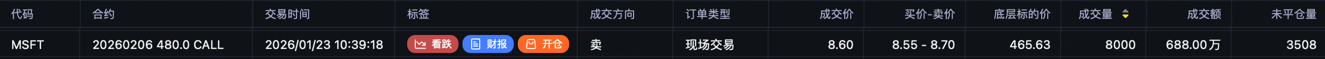 On the same day, $MSFT 20260206 480.0 CALL$ opened 14k contracts, direction sell.