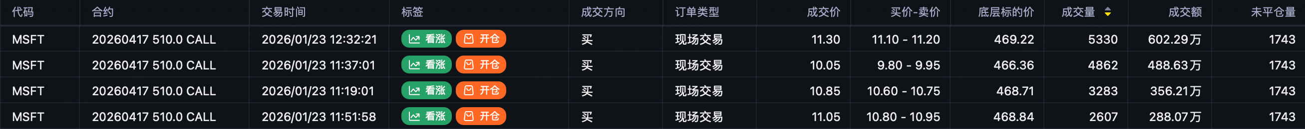 $MSFT 20260417 510.0 CALL$ opened 34k contracts, direction buy.