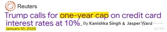 16 Jan 2026 : White House parrot, Karoline Leavitt affirmed that the 10% cap is a demand, not a request, and that the administration expects credit card companies to comply.