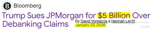 Fresh off the TACO boat on Greenland saga, news arrived that Trump has filed a $5 billion lawsuit against $JPMorgan Chase(JPM)$ and its CEO, Jamie Dimon. (see below)