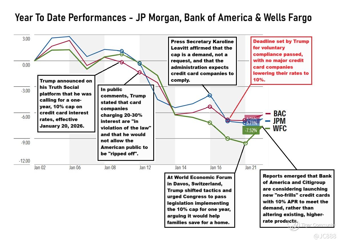 Truth be told, since 09 Jan 2026, US banks have been on the slide when Trump first rattled off about the 10% cap on credit card on his propaganda platform - Truth Social. (see below)