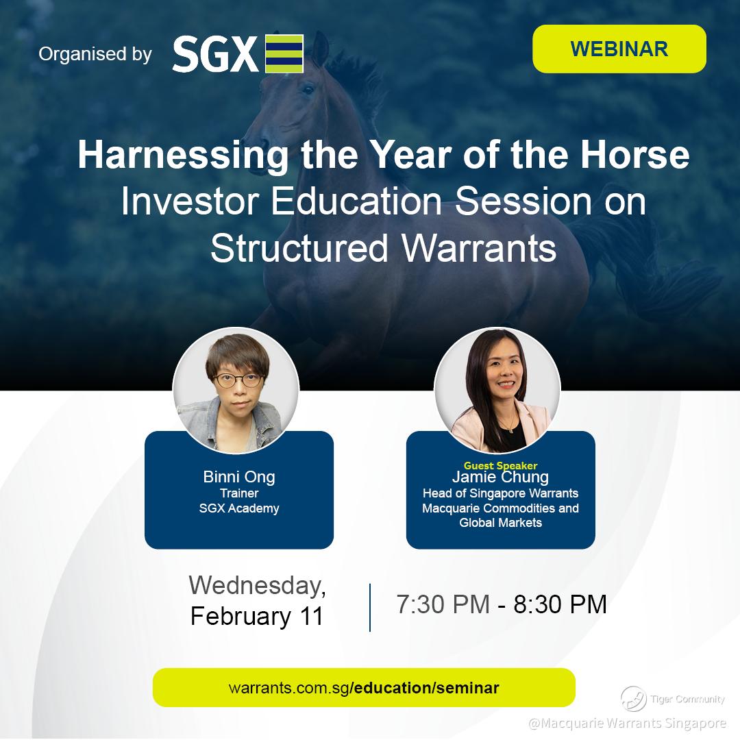 💵Attend the webinar to participate in a pop quiz, where $5 vouchers will be awarded to five winners: https://www.sgxacademy.com/event/harnessing-the-year-of-the-horse-investor-education-session-on-structured-warrants/