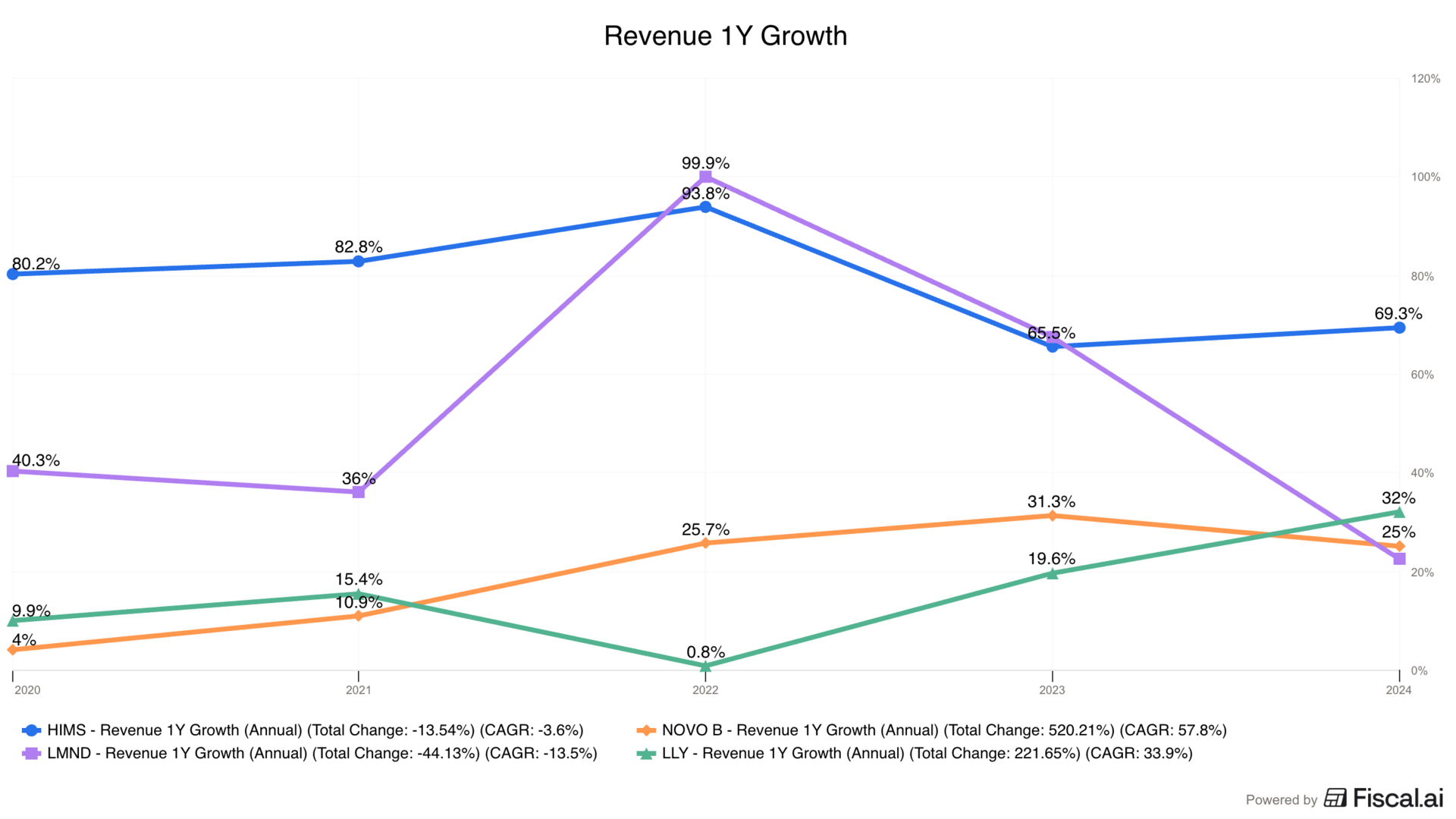 Here’s what’s crazy. Hims & Hers is growing faster than companies like $Eli Lilly(LLY)$ and $Novo-Nordisk A/S(NVO)$ (in its market) and $Lemonade, Inc.(LMND)$ (another hot stock). And it is growing far faster than hot stocks like $Tesla Motors(TSLA)$ and $Palantir Technologies Inc.(PLTR)$ .
